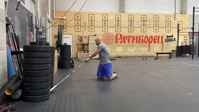 Лэндмайн твисты со штангой стоя на коленях