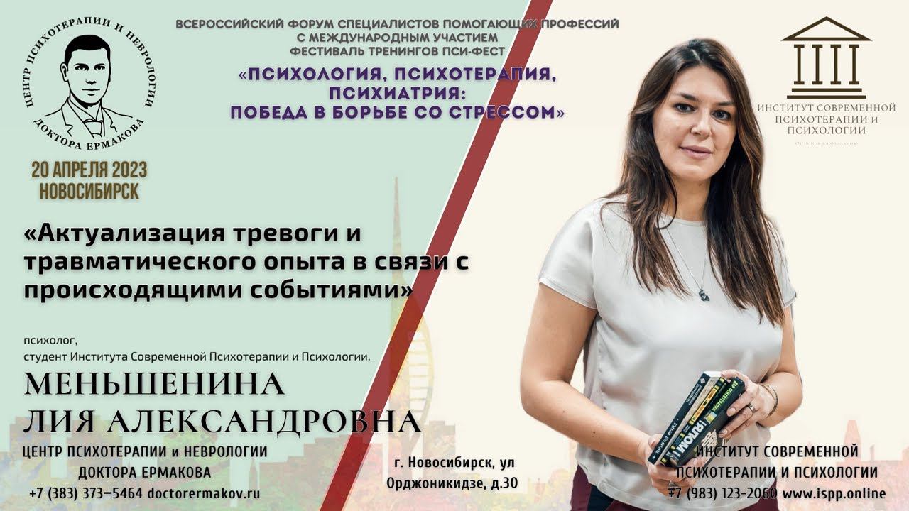 Меньшенина Лия Александровна – психолог, студент Института Современной Психотерапии и Психологии. Россия, Новосибирск. Доклад будет основан на собственной практике и на опыте коллег, которым они делились на встречах интервизионного клуба "Рубинштейн". Трудности клиентов в связи с происходящими событиями можно разделить на категории: - Тревога, страх, подавленность и другие жалобы. - Тревожно-депрессивные состояния как нормальная реакция на стресс. - Актуализация раннего травматического опыта (особенно если в анамнезе было насилие) - Невозможность адаптироваться к условиям неопределенности - Отдельная категория клиентов - близкие мобилизованных. •Всероссийский форумаспециалистов помогающих профессий "Психология, психотерапия, психиатрия: победа в борьбе со стрессом". •Секционное заседание "Современные тенденции в психотерапии и психологическом консультировании". Центр Психотерапии и Неврологии доктора Ермакова: Телеграмм: https://t.me/doctorermakov Вконтакте: https://vk.com/doctorermakov Институт современной психотерапии и психологии: Канал ИСПП в телеграмм: https://t.me/isppnsk Группа ИСПП в Вконтакте: https://vk.com/modernpsychoterapy