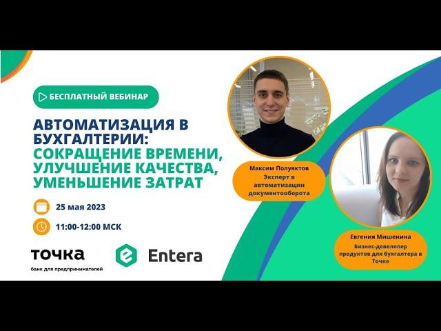 На БЕСПЛАТНОМ вебинаре 25 мая специалисты Точки и Entera осветили следующие моменты: -самые важные функции для бухгалтера в интернет-банке -как экономить время при работе в интернет-банке с большим количеством клиентов -как оптимизировать бизнес-процессы благодаря автоматическому вводу первички Хотите узнать, когда будет следующий вебинар? Подписывайтесь на рассылку анонсов: https://entera.pro/webinary #бухгалтерскиеуслуги #бухгалтерскийучет #бухгалтерскоеобслуживание #бухучет #аутсорс #ведениебухгалтерскогоучета #бухгалтерудаленно #бухгалтерскаякомпания #аутсорсингбухгалтерскихуслуг #entera #энтера #автоматизацияпервички #автоматизациябизнеса #автоматизация1с #автоматизацияпервички #распознаваниепервички #сервисавтоматизации #бухгалтеру #авансовыйотчет #вводчековв1с #чекив1с #приложение1с #мультибухгалтер #планирование
