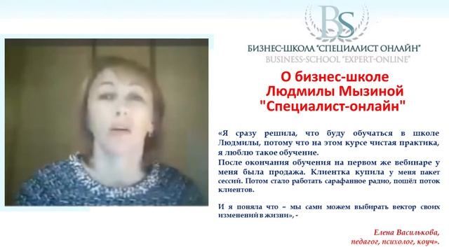 Мнение о бизнес школе Л Мызиной СПЕЦИАЛИСТ ОНЛАЙН выпускницы Елены Васильковой