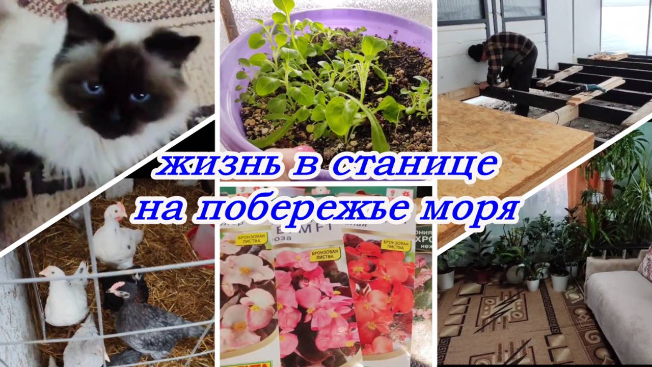 ЖИЗНЬ В СТАНИЦЕ НА ПОБЕРЕЖЬЕ МОРЯ, СТРОИМ ДОМ, ПИКИРОВКА ПЕТУНИИ, ЗАНИМАЮСЬ ЦВЕТАМИ, ЦЫПЛЯТА