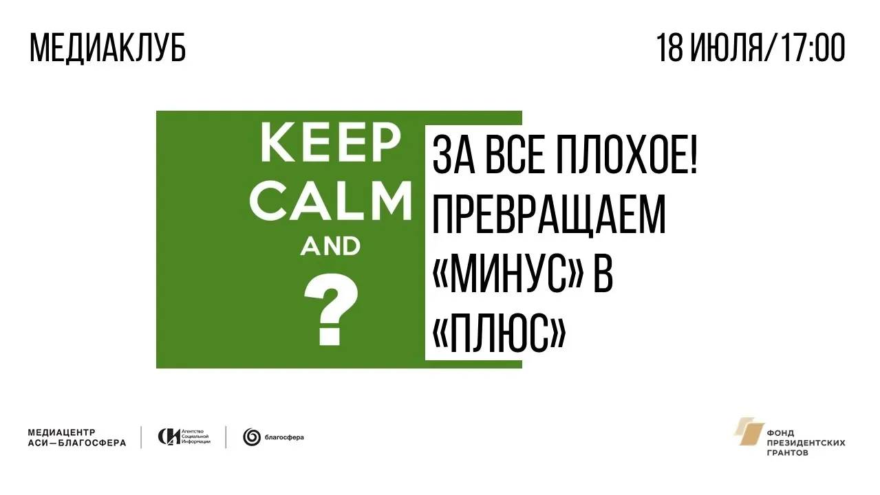 Медиаклуб «За все плохое! Превращаем «минус» в «плюс» »