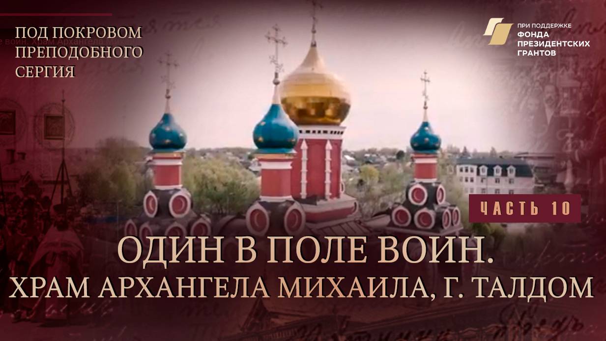 Десятая серия проекта "Под покровом преподобного Сергия. Святыни и храмы Сергиево-Посадской епархии" расскажет об истории храма Архангела Михаила в г. Талдом. Настоятель храма протоиерей Илья Шугаев - автор книг о семье, браке и воспитании детей, поделится со зрителями тем, чем живет сегодня приход. Ведущий серии - учащийся православной гимназии "София" Александр Горовский.