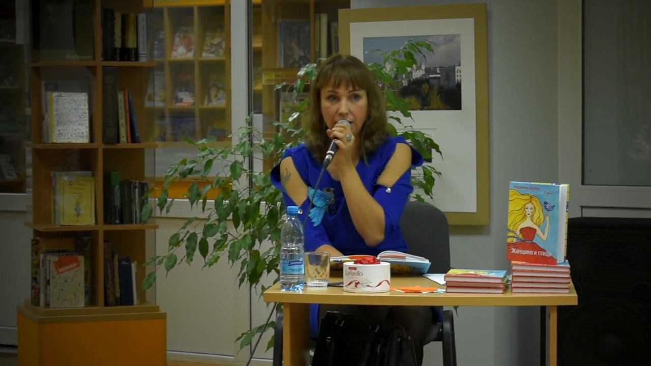 Фрагмент презентации сборника "Женщина и птица", 1 октября 2019 года, Центральная городская библиотека имени Максима Горького.