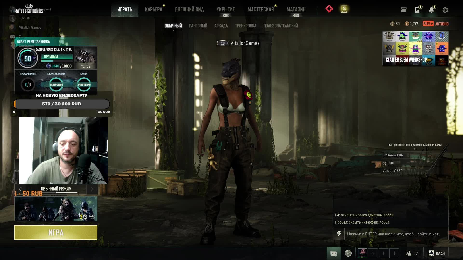 ?Поддержать стримера монеткой для улыбки? ?Донат - https://www.donationalerts.com/r/vitaliano2030 ?Карта сбер: 2202 2061 1424 8177 ?Уралсиб 4242 9010 2958 4587 ?Альфа Банк 4790 0430 7994 1908 ?Мтс 5246 0291 1848 8800 ?Тинькофф 5213 2440 0300 3676 ?ОТП Банк 5213 3011 1136 3903 ?СВЯЗЬ СО МНОЙ? ➤ПОЧТА: vit2030vit@mail.ru Мой ПК ║ Монитор: ViewSonik VX2239WM-3 ║ Процессор: Ryzen™ 5 3600 ║Материнская плата Gigabyte b450 aorus elite 2v ║ Видеокарта : Palit GTX 1650 4gb ║ ОЗУ: KINGSTON HYPERX FURY DDR4 32GB 2666Mhz ║ Мышь: Bloody V8 ║Микро: SUNWIND ║Веб-камера: Defender G-Lens 2694 Full HD ✉ ПРАВИЛА ЧАТА ✉ ║ ► Запрещены: Оскорбления в чей либо адрес. ║ ► Запрещены: Флуд, Капс, Спам, Реклама, Мат. ║ ► Запрещены: Разговоры о политике. ║ ► Запрещено: Создавать негативную атмосферу в чате.