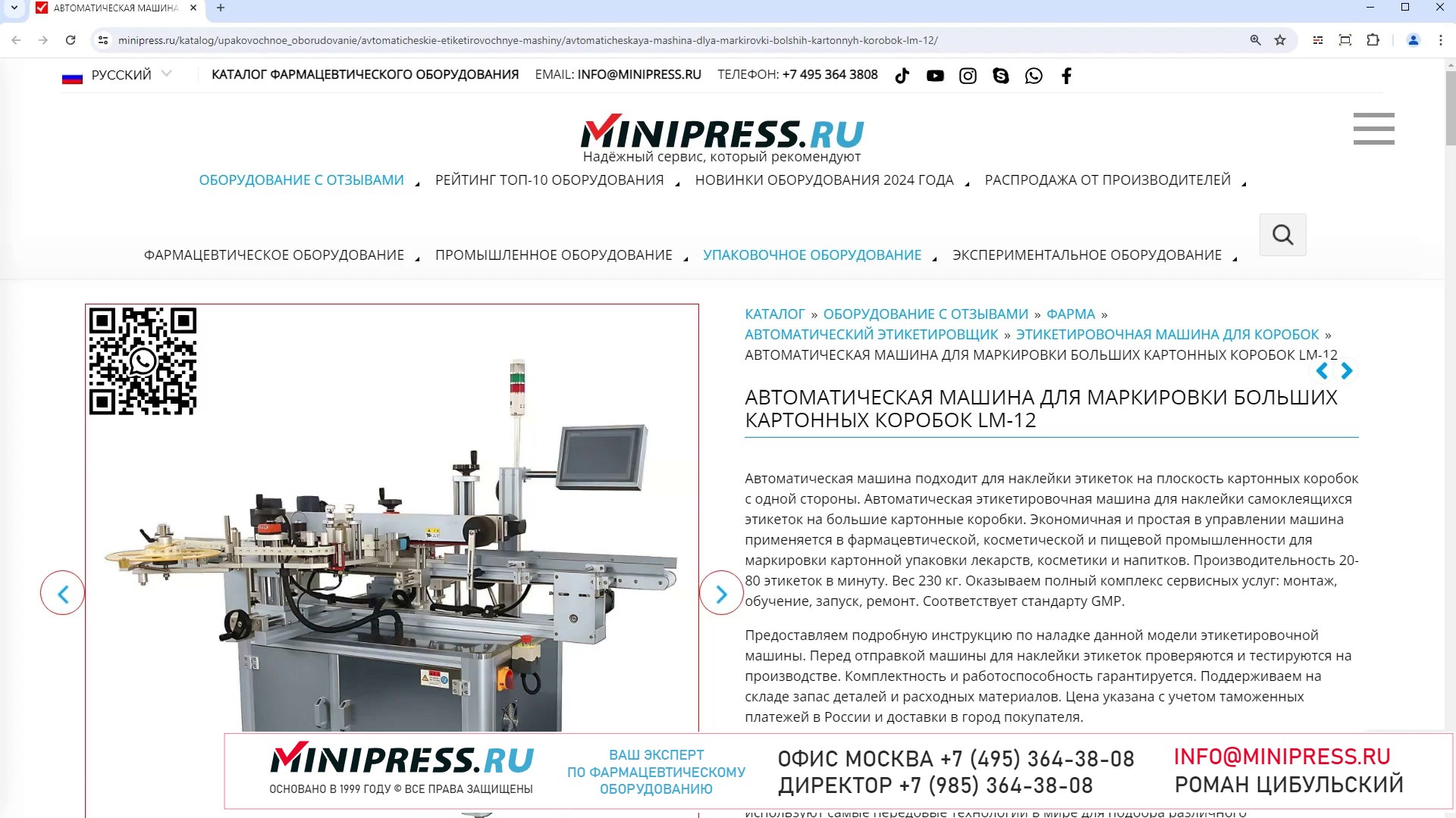 Компания MINIPRESS.RU занимается подбором и поставкой АВТОМАТИЧЕСКИХ УПАКОВОЧНЫХ МАШИН для фасовки таблеток, капсул, драже, гранул, ампул, флаконов и других видов фармацевтической продукции. Оборудование для герметичной, индивидуальной и групповой упаковки в алюминиевую фольгу, фильтр бумагу, полиэтиленовую пленку, нейлон и другие материалы. Компания Романа Цибульского MINIPRESS.RU занимается поставкой большого ассортимента фармацевтического оборудования из Китая, Кореи, Индии, Европы и других стран. Мы выполняем работы по поиску, подбору, закупке, доставке, и таможенной очистке оборудования с доставкой в любой город России и стран СНГ. Основатель и ведущий специалист компании - Роман Цибульский. Компания MINIPRESS.RU (зарегистрированный товарный знак) основана в 2000 году. Онлайн каталог оборудования MINIPRESS.RU ежедневно посещают несколько тысяч человек. Мы развиваем крупные каналы в социальных сетях, посвященные тематике фармацевтического оборудования. Вы можете посмотреть видео ролики об оборудовании, которым мы занимаемся. Фактически у нас самый большой в России многоязычный каталог фармацевтического оборудования с фотографиями, описаниями, и что более важно с ценами и видео демонстрацией оборудования в работе. Подбор оборудования и консультации ведет сам владелец компании - Роман Цибульский. Компания имеет огромный опыт в работе с различным оборудованием, технологиями. Помогаем клиентам выбрать модель фармацевтического оборудования, которое сможет решить поставленную задачу. Наши специалисты помогают рекомендациями в решении проблем по эксплуатации оборудования. Наша компания имеет офис в г.Шанхай и несколько менеджеров, которые помогают в работе с китайскими поставщиками. Мы долго сотрудничаем и дружим с этими специалистами. Китайские поставщики ценят нас как постоянных партнеров. Роман Цибульский Директор компании Минипресс Поставка фармацевтического оборудования в Россию Пишите: info@minipress.ru Gmail: boss.minipress@gmail.com Офис в Москве +7(495)364-38-08 Мобильный +7(985)364-38-08 (WhatsApp) Каталог оборудования https://www.Minipress.ru/katalog/ МИНИПРЕСС.РУ В СОЦИАЛЬНЫХ СЕТЯХ FB https://facebook.com/roman.tsibulsky YOUTUBE https://www.youtube.com/@farmacevticheskoe_oborudovanie INSTAGRAM https://www.instagram.com/farmacevticheskoe_oborudovanie/ #поставки #стекло #ультразвук #предложение #бады #фасовка #заказы #упаковка #производство #размер