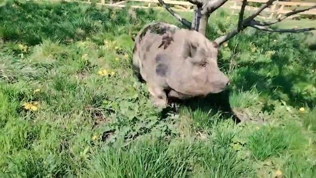 Хрюша чешет бочки о дерево