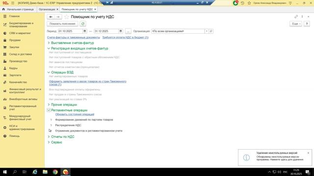 Компания «Кодерлайн» провела вебинар «1С:ERP - Изменение лимита до 10 млн. руб. для упрощенцев и всё об НДС» Налоговая реформа 2025-2026 годов не обошла вниманием и предприятия, применяющие ОСНО, и предприятия, применяющие спец. Режимы. Наиболее резонансные изменения коснулись УСН. Анонсированные на 2026 год изменение лимита доходов 10 млн руб. и ставки НДС 22% потребуют от участников бизнеса пересмотра Учетной политики, настроек конфигурации и пересмотра бизнес-процессов. Что потребуется изменить, какие настройки выполнить, рассматриваем на примере 1С:ERP. Ведущая: Гардышева Галина - консультант-аналитик 1С:ЕRP Программа 1. Как посчитать доходы для освобождения по НДС; 2. Новшества для общепита и туристического бизнеса; 3. Изменения в ЭДО; 4. Уплата НДС с 2026 - новшества; 5. Дополнительные сервисы, отчеты.