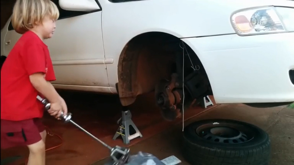 Ребёнок меняет подшипник ступицы колеса на Королле