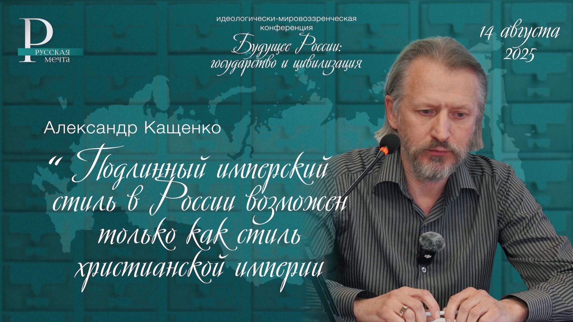 Позиция искусствоведа, кинодокументалиста Александра Кащенко, озвученная на конференции 14 августа. — Любая империя должна владеть большим стилем — не только в искусстве, но в политике, экономике и финансах. Однако стиль не приходит извне, его носителем является сам человек, homo imperis. Сегодняшние проблемы — это проблемы русского человека как такового, его идентичности и способности быть творцом большого стиля. — В результате 300-летней модернизации наш народ утратил живую речь и культуру. Очаги народного говорения, существовавшие ещё в 1960-е, окончательно погребены под агрессивной информационной средой. Поэтому вывести большой стиль, опираясь на народ, невозможно — он безмолвствует или говорит на чужих языках. — Ни открытые партии, ни закрытые масонские ложи не способны породить большой стиль. Нужны более древние формы — рыцарские или монашеские ордена. Примеры: аббат Сугерий, создавший готику в XII веке, или Иван Грозный с его Избранной радой и опричниной. Это модели консолидации людей вокруг фигуры правителя, способные инициировать культурную революцию. — Современные попытки явить большой стиль (ПМЭФ, Москва-Сити, спортивные шоу) — это не стиль, а конвейерное тиражирование модулей. Русская христианская империя стоит на двух основах: аскезе (Великий пост) и благодати (Пасха). Крест и Воскресение — вот источники, из которых рождается подлинный большой стиль.