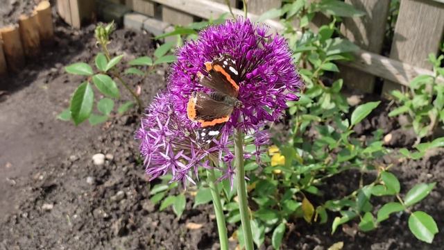 Red Admiral butterfly visiting my allium plant || spring cottage garden🌿🌸☘️🦋🐝