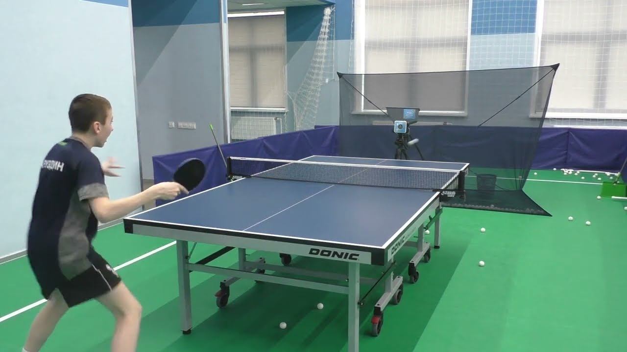 Юный спортсмен тренируется с помощью тренажера для настольного тенниса Фора - Снайпер