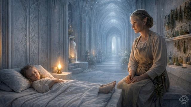 Войдите в священный эльфийский зал исцеления, скрытый глубоко внутри горы из белого камня. Сводчатый потолок — из живого хрусталя, бледного, полупрозрачного, светящегося мягким внутренним светом, который медленно меняется между серебристым и едва уловимым голубым, как дыхание луны. Воздух прохладный, неподвижный, невероятно чистый — тонкий аромат целебных трав, родниковой воды и чего-то древнего — минеральное дыхание глубокого камня. Где-то движется вода — невидимая, только слышная — тонкая нить звука, которая не нарушает тишину, а скрепляет её. Это место, где боли позволено уйти, а покою — остаться. Эта фэнтези-атмосфера идеально подходит для глубокого сна, восстановления, медитации или чтобы просто побыть в тишине, которая держит. Ложитесь. Свет знает, где болит. Объяснять не нужно. https://vk.com/ardaelenat
