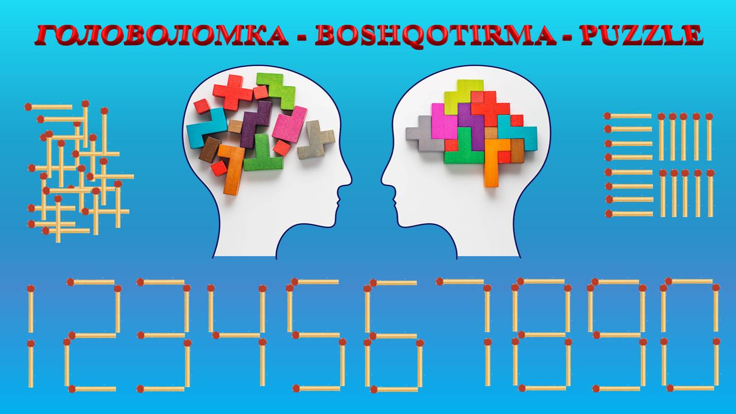 ГОЛОВОЛОМКА - BOSHQOTIRMA – PUZZLE. Спичка. 95-33=69, 93+55=30, 80-22=68, 88-22=59