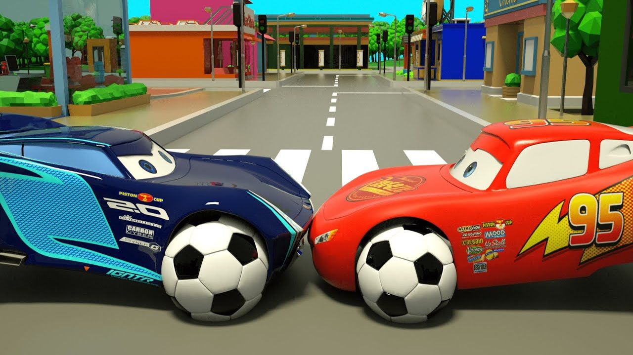 Тачки - Маккуин, Мактрак и уличные транспортные средства. Сборка футбольного мяча и шин для детей.