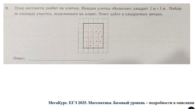 Задание 9. План местности разбит на клетки. Каждая клетка обозначает квадрат 1 м * 1 м. Найдите площадь участка, выделенного на плане. Ответ дайте в квадратных метрах. Курс по всем заданиям 1 - 21 базового уровня ЕГЭ по математике: https://stepik.org/a/174709 Группа ВК: https://vk.com/secretroom2023 #егэ #математика #база