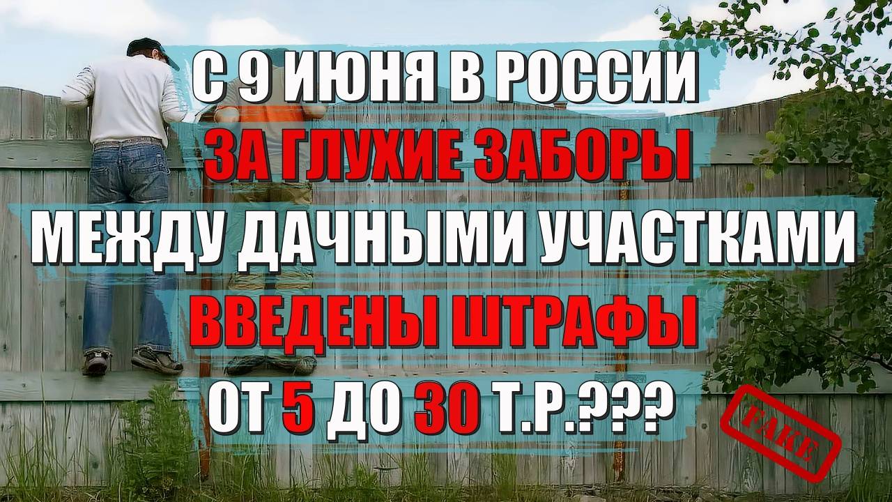 Последнею неделю активно тиражировались новости о том, что с С 9 июня в России за глухие заборы между дачными участками введены штрафы от 5 до 30 т.р. Соответствуют ли действительности эти новости? Расскажу в настоящем видео. Ссылка на СНИП - https://www.minstroyrf.gov.ru/upload/iblock/bd3/SP-53.pdf Читать и смотреть меня можно еще и здесь 👇👇👇 Ссылка на группу ВК - https://vk.com/toxiclawyer Ссылка на Дзен - https://dzen.ru/id/5ea5a0e9c9c7e01bd613d1d8 Ссылка на Дзен (второй канал) - https://dzen.ru/id/5b1f7c114826776dc0991e01 Ссылка на Платформу - https://plvideo.ru/channel/HHfDhhxBDlSJ Рутуб - https://rutube.ru/channel/23488284/ Кто хочет поддержать канал, может приобрести мой сборник стихов - ссылка на приобретение сборника - https://vk.com/public204382471?w=product-204382471_7390862%2Fquery