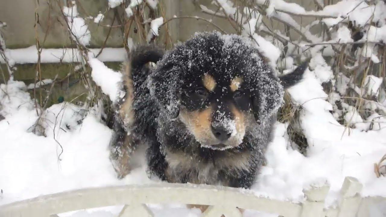Исключительная гармония ! Щенки тибетского мастифа исследуют снег. 2016 01 03