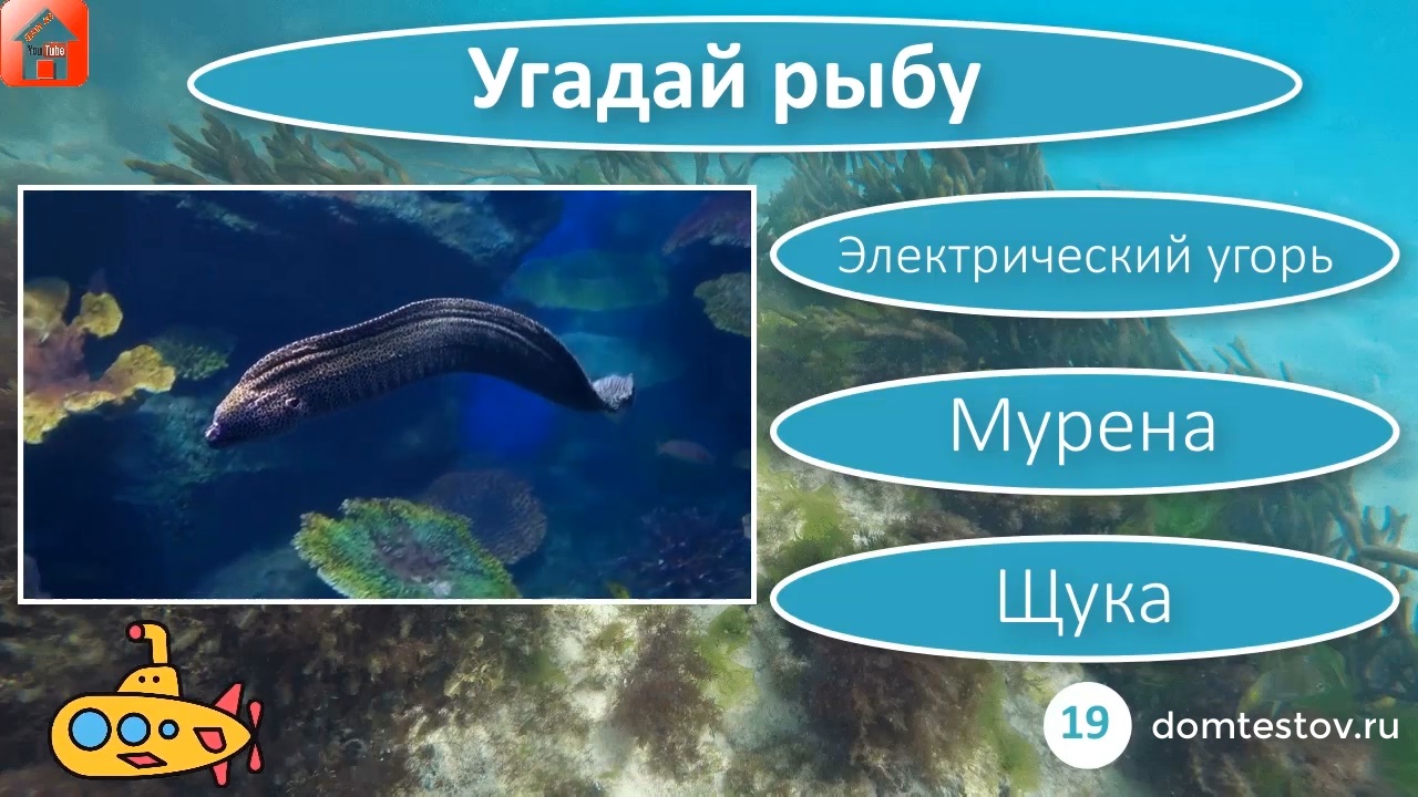 ? Дзен https://zen.yandex.ru/dom49 ? YouTube https://www.youtube.com/channel/UCtqZT3_uLlOr6xMseGsEgiw ? Rutube https://rutube.ru/channel/24243775/ ? Одноклассники https://ok.ru/group/68849937743914 ? ВКонтакте https://vk.com/domtestov ? Mail.ru https://my.mail.ru/community/domtestov/ ? ЖЖ https://zanzebir.livejournal.com/ ? Сайт Дом тестов https://domtestov.ru ? Посмотрите Тест Животные ? https://bit.ly/animals-test ? Тест Птицы ? https://bit.ly/birds-test ? Тест Рыбы ? https://bit.ly/test-fish ? Всем привет! Посмотрите наш "Тест Рыбы. Угадай рыбу. Проверь хорошо ли ты знаешь рыб в игре-викторине. 10 вопросов и ответов. Тест #2 Игра-викторина для детей, школьников и взрослых". ? Посмотрите наши тесты и викторины, расскажите о них друзьям, детям и внукам. Спасибо за просмотр видео. Удачи вам и хорошего дня! ❤ Пожалуйста подпишитесь на наш канал в Дзене и на YT, Rutube, поддержите канал и ролики подпиской, лайками и комментариями, заходите на наш сайт (ссылка в шапке канала), там вы найдете много тестов через функцию поиска. Это поможет нам создавать и выкладывать новые видео.