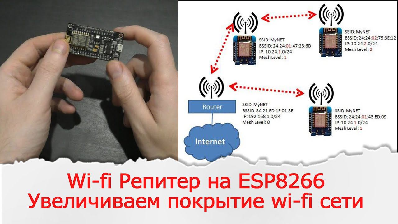 ESP8266: http://alii.pub/6864kd ПО этой же ссылке найдете и с rca разъемом под антенну. Показанное в видео описал на сайте: http://psenyukov.ru/wi-fi-%d1%80%d0%b5%d0%bf%d0%b8%d1%82%d0%b5%d1%80-%d0%bd%d0%b0-esp8266/ Страница проекта на github: https://github.com/martin-ger/esp_wifi_repeater ================================================ Кэшбэк возврат до 15% от покупки на Alixpress : http://ali.pub/51dh2x ================================================ Помощь каналу: http://www.donationalerts.ru/r/ypavla