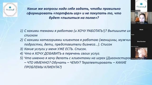В видео вы узнаете: - Зачем нужны игры и как они могут помогать быстрее и глубже работать с клиентскими запросами? - Какие игры бывают, и как выбрать игру, которая подойдёт именно вам? - Игра как элемент воронки продаж ваших услуг: как игры могут привлекать больше клиентов в вашу практику?