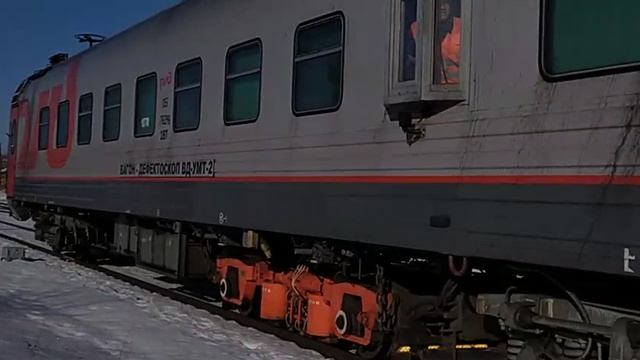 Машинистам большое спасибо за приветствие! По 2гл.пути следует ТЭП70БС - 205 с вагоном - дефектоскопом. СКЖД. 17.01.24г. 11:12.