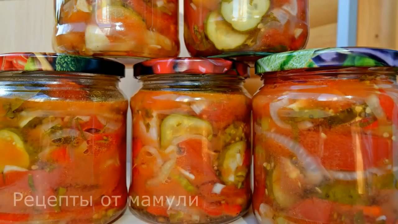 Долго не решалась готовить его на зиму. Но когда приготовила на свой вкус, он стал одним из любимых. Теперь у меня правило, новые рецепты сначала на пробу. И любимых уже штук 100! Рецепт: Помидоры - 1,300 гр Огурцы - 600 гр Перец сладкий - 3 шт ( можно разного цвета) Лук - 2 шт синего и 2 шт белого ( среднего размера) Чеснок -3-4 зубчика Масло растительное - 75 мл Соль - 1 ст.л Сахар - 0, 5 ст.л (+0,5 ч.л в каждую баночку) Уксус - 0,5 ч.л в каждую баночку