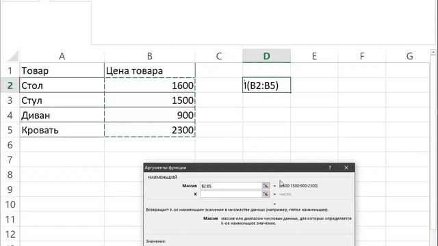 Формула найти наименьшее в таблицах Excel