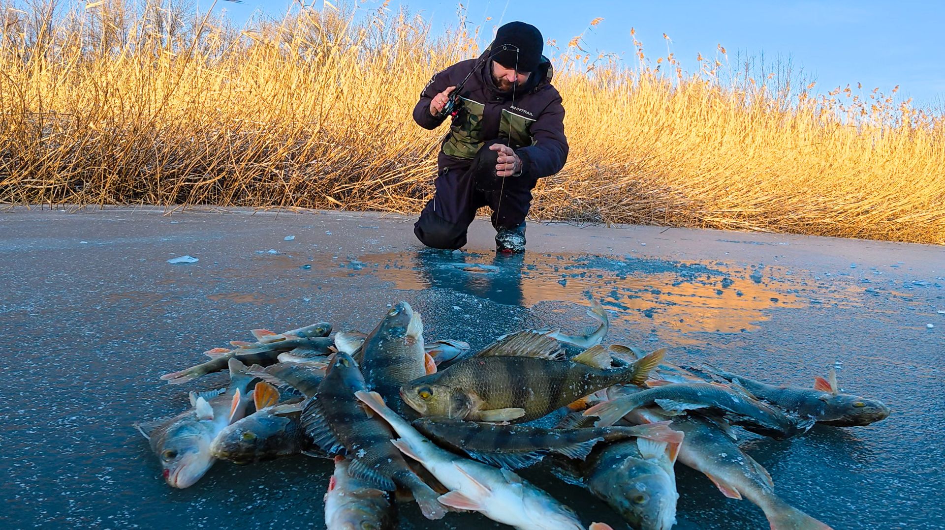 ЩЕДРЫЙ ПЕРВЫЙ ЛЁД В АСТРАХАНИ. ТЯГАЮ ОКУНЕЙ НА БАЛАНСИР. Подлёдная рыбалка.