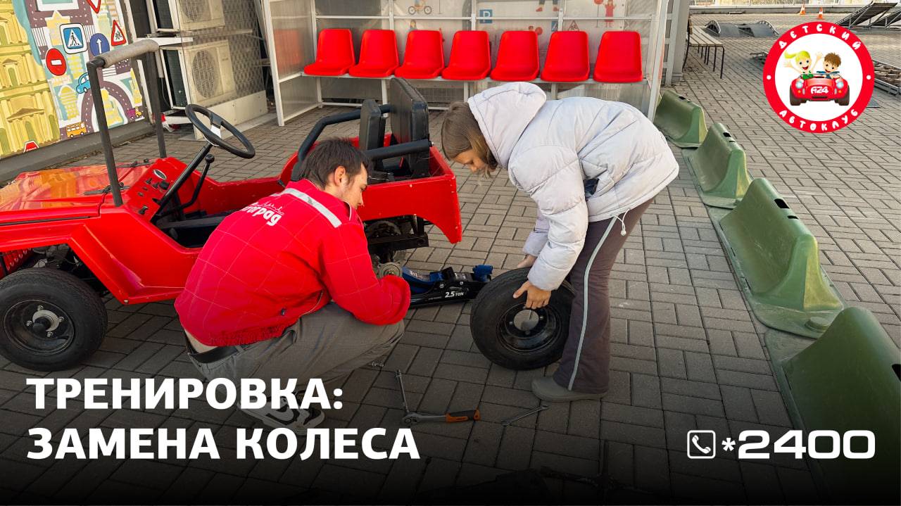 Замена колеса автомобиля. Дети изучают устройство машины