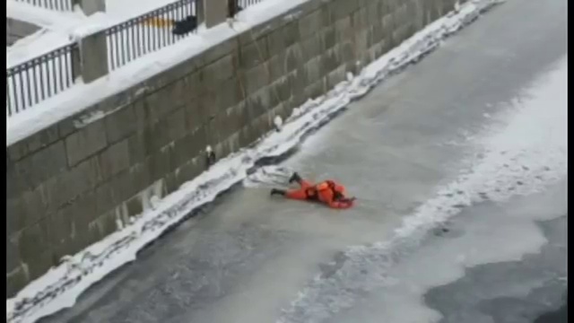 Спасение утки, примерзшей ко льду в Обводном канале