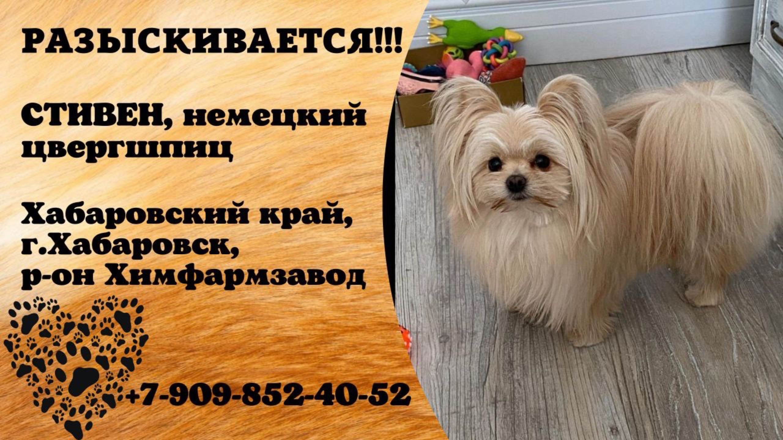 Пропала собака! СТИВЕН, немецкий цвергшпиц. Хабаровский край, г.Хабаровск.