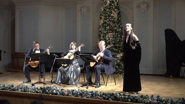 Андреа Фальконьери Канцона "Прекрасные кудри" Исп. Татьяна Швед Класс народной артистки России, профессора Московской консерватории Лидии Алексеевны Черных и Московское гитарное трио: Дмитрий Бородаев Виктория Налетова Вячеслав Шугаев Фрагмент "Новогоднего вечера с гитарой" Рахманиновский зал Московской консерватории, 04.01.2025г.
