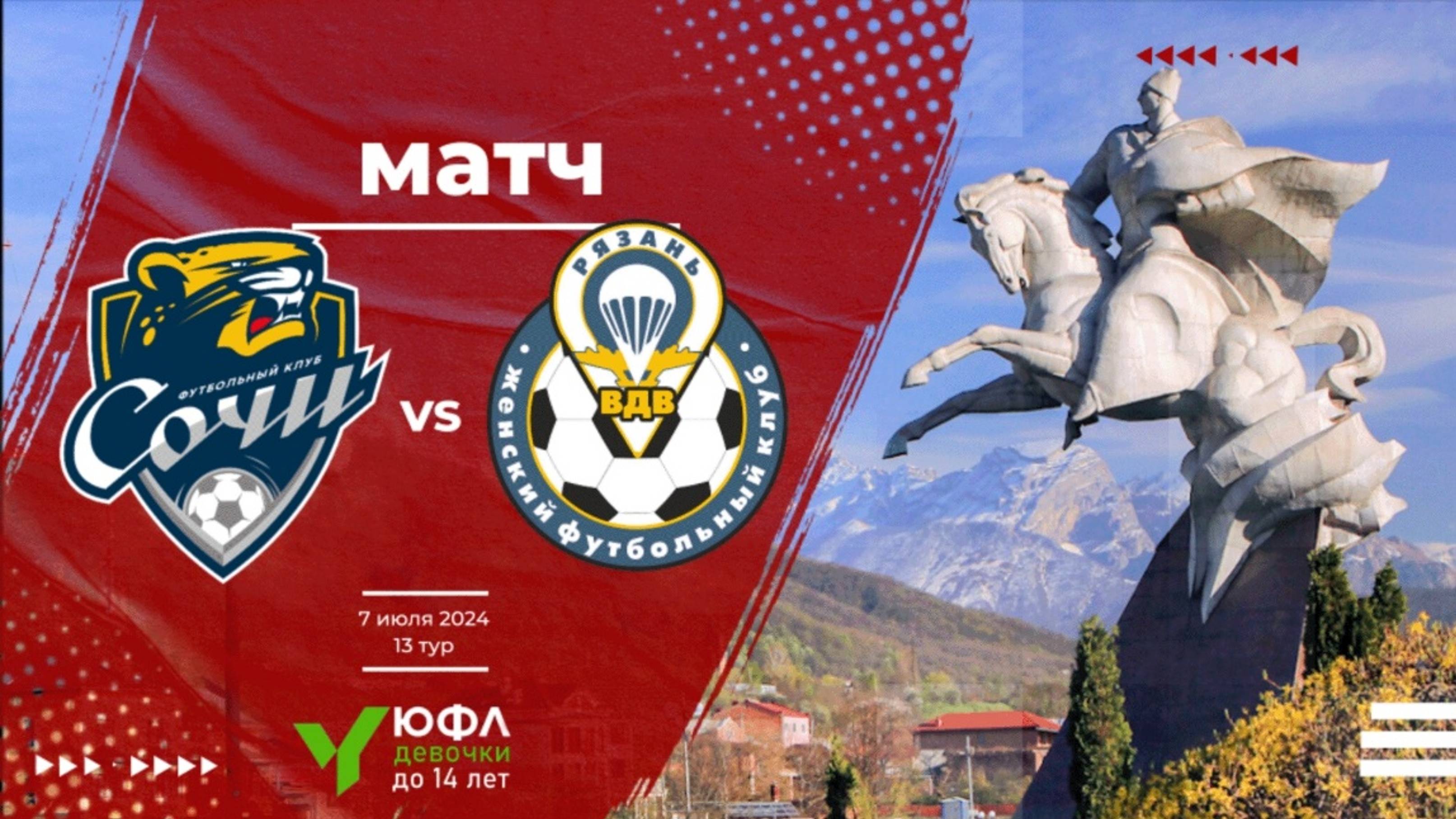 Сочи - Рязань-ВДВ (Рязань). ЮФЛ-девушки до 16 лет. 07.08.2024