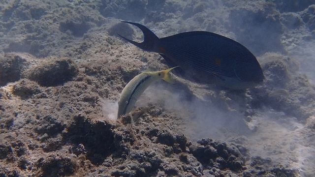 Барабуля желтополосая, Mulloidichthys flavolineatus Арабский хирург Acanthurus sohal P2010028