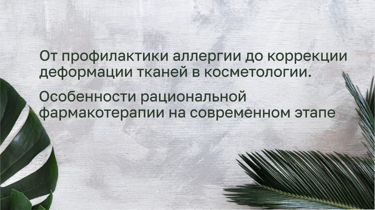 От профилактики аллергии до коррекции деформации тканей в косметологии. Особенности рациональной фармакотерапии на современном этапе. 1 апреля 2021