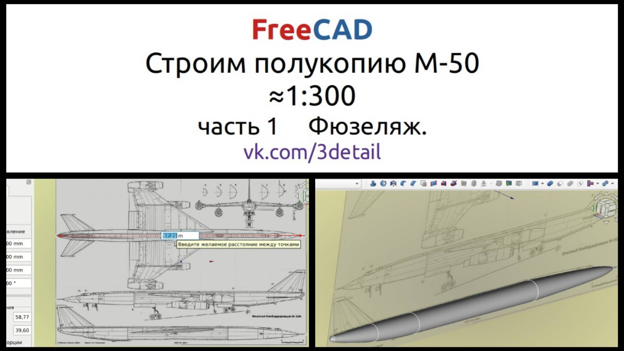 Лучший учебник-самоучитель по FreeCAD https://orbita.fans/p/freecad/posts/019a1c3d-f124-4183-aab1-5d901b1f196d Все мои обучающие видео по FreeCAD смотрите без рекламы на Платформе https://plvideo.ru/@freecad/videos Первая часть, ускоренного в 2 раза видео, о постройке в FreeCAD 3D модели советского бомбардировщика М-50. Это будет достаточно простая модель, без точной детализации. То есть полукопия (однозначно идентифицируемая и узнаваемая) Это не мастер-класс, поэтому построение содержит некоторые ошибки, которые будут исправляться по ходу моделирования или чуть позже. Если кто-то будет строить модель параллельно, то естественно может вносить свои изменения и улучшения.
