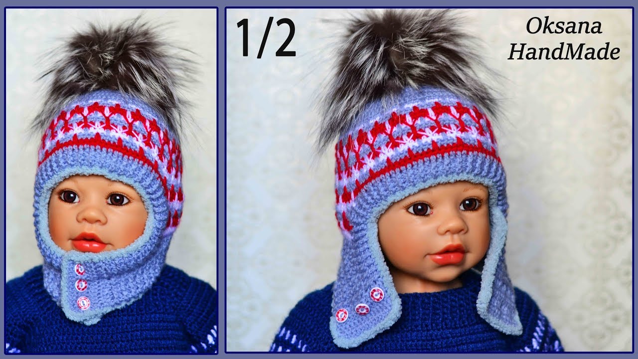 Зимняя ШАПКА УШАНКА крючком. Мастер класс 1/2
