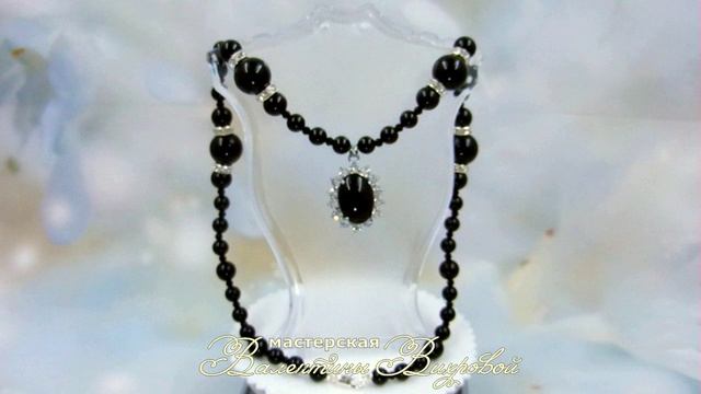 Винтаж, ожерелье с подвеской, чёрный агат