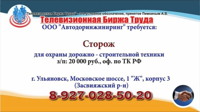 Вакансии и телефоны прямых работодателей в специализированной программе по трудоустройству "Телевизионная Биржа Труда" - г.Ульяновск