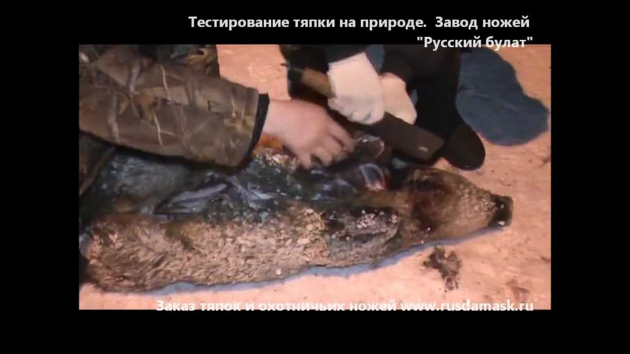 Ограничение по возрасту: +18 Видео предназначено для просмотра только охотникам и рыбакам. Если вы не занимаетесь охотой и рыбалкой то мы не рекомендуем просмотр данного видео. Заказать тяпку из дамасской стали можно на сайте http://rusdamask.ru/kuxonnye-povarskie-nozhi/nozh-tyapka-klinok-damasskaya-stal-rukoyat-beresta/ ====================================== -------------------------------------- Загрузить мобильное приложение с нашим каталогом ножей для iPhone, iPad и Android: http://rusdamask.ru/informaciya/mobilnoe-prilozhenie/ -------------------------------------- ====================================== Интернет-магазин ножей "Русский булат" -------------------------------------- 1) Охотничьи ножи http://rusdamask.ru/catalog/oxotnichi-nozhi/ 2) Ножи из тигельного булата http://rusdamask.ru/catalog/bulatnye-nozhi/ 3) Рыбацкие ножи http://rusdamask.ru/catalog/rybackie-nozhi/ 4) Ножи из стали 9ХС http://rusdamask.ru/catalog/nozhi-ruchnoj-kovki-iz-stali-9xs/ 5) Ножи из порошковой стали ELMAX http://rusdamask.ru/catalog/nozhi-iz-poroshkovoj-stali-elmax/ 6) Исторические копии ножей http://rusdamask.ru/catalog/istoricheskie-kopii-legendarnyx-nozhej/ 7) Туристические ножи http://rusdamask.ru/catalog/turisticheskie-nozhi/ 8) Подарочные ножи http://rusdamask.ru/catalog/podarochnye-nozhi/ 9) Тяпки http://rusdamask.ru/catalog/tyapki/ 10) Топоры ручной ковки http://rusdamask.ru/catalog/topory/ --------------------------------------------------------------------------- =========================================================================== Смотреть отзывы про ножи Русский булат http://rusdamask.ru/informaciya/otzyvy/ =========================================================================== --------------------------------------------------------------------------- Русские ножи от компании Русский булат - http://rusdamask.ru