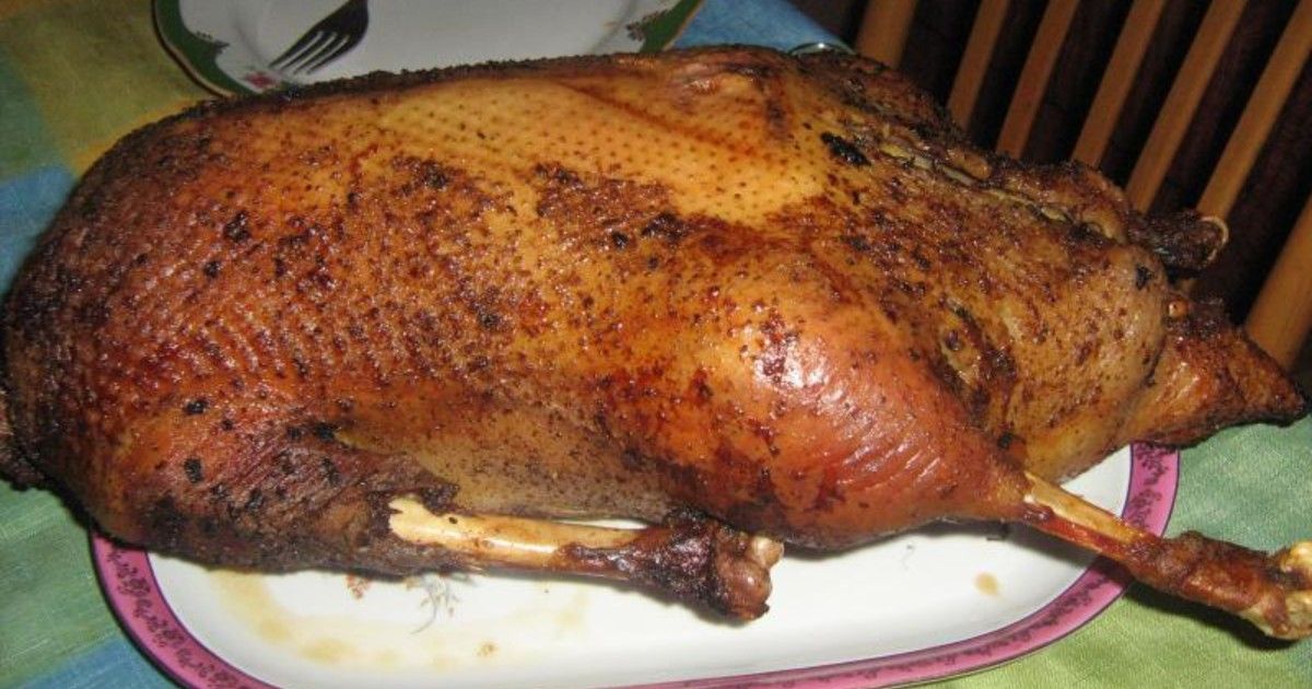 Гусь с яблоками в овощном соусе