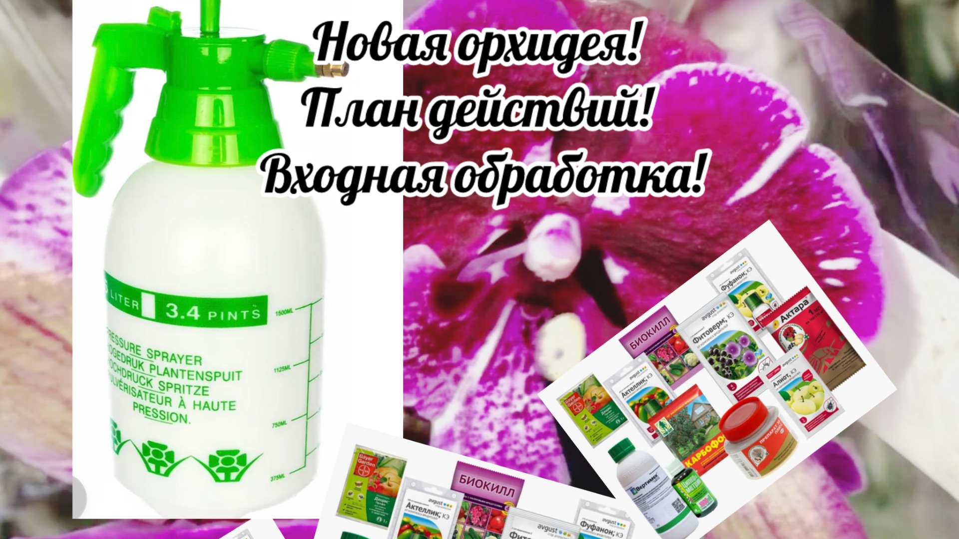 Новая орхидея! Только купили новое растение! План действий. Что лучше сделать сразу, как новая орхидея попала к Вам в дом! Входная обработка орхидей после покупки: защита от вредителей! В данном видео обработку было решено сделать баковой смесью, были замечены немного гнилых корешков! Состоящей из препаратов: 1) Инсектоакарицид 2) Фунгицид 3) Стимулятор, антистресс Через недельку повторила обработку, но обычно я всегда использую разные препараты от вредителей при повторной обработке. В данном случае и с выбранными препаратами достаточно вообще 1-2 обработок.