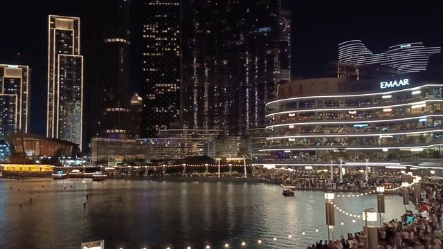 Дубай. Дубай Молл. Ждем поющие фонтаны... Очень много народу... Красивые небоскрёбы... Как Вам?