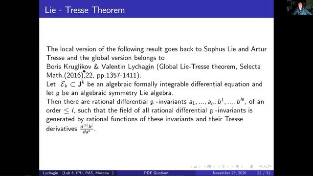 25 Nov 2020 Valentin Lychagin Geometry of differential equations Страница семинара - https://gdeq.org/Seminar The seminar works at the Independent University of Moscow - https://mccme.ru/ru/nmu/ Эта и другие лекции смотрите на канале RuTube - https://rutube.ru/channel/42881756/