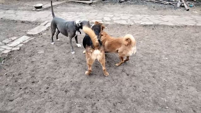 Наконец пришла весна и собаки могут играть во дворе