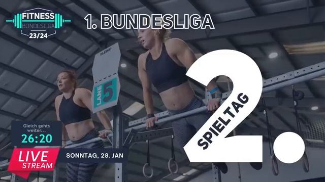 n der KONFERENZ zeigen wir euch den 1. Spieltag der 1. Bundesliga Saison 2023/2024. Wir berichten LIVE und schalten die Boxen aus ganz Deutschland dazu. Für alle Teams geht es um Bestzeiten, Highscores und den Aufstieg in die 1. Liga. Der Gewinner des Spieltags löst das direkte Ticket ?. Für alle anderen Teams heißt es zittern. Neben den 8 Siegern der Zweitligaspieltage der Saison 2023 qualifizieren sich weitere 16 Teams entsprechend des nationalen Rankings. ? ON-AIR 10.45 Uhr Du hast unseren Chanel noch nicht abonniert? ✍️ DANN JETZT NACHHOLEN UND KEIN CLIP VERPASSEN ? https://www.youtube.com/c/FitnessBundesliga?sub_confirmation=1 ?♀️?♂️ TEAMS Athletenschmiede Kiel CrossFit Ahoi CrossFit Flensburg Foerde Crossfit Heart n Heavy Crossfit Mamba Gym WYSH North Gym Norderstedt ? ALLE INFOS ZUM SPIELTAG https://fitness-bundesliga.de/ ? FOLLOW ➡ https://www.instagram.com/fitnessbundesliga/ ➡ https://www.facebook.com/FitnessBundesliga/ ? UNSERE PARTNER BiG direkt gesund ?⚕️ https://www.big-direkt.de MaxiNutrition ☆ https://maxinutrition.de Suprfit ?️♂️https://suprfit.com Lift Heavy ? https://lift-heavy.de