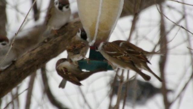 У кормушки для воробьёв