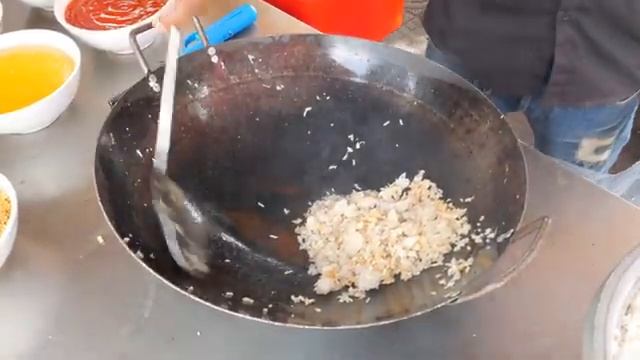 Жареная лапша на большой железной тарелке, жареный рис с креветками, жареная лапша Путешествие продолжается https://rutube.ru/plst/228758