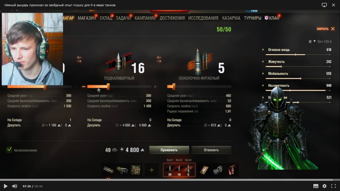 тёмный рыцарь прокачал за свободный опыт пушку для 9 в мире танков. 46 серия.